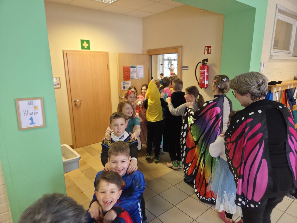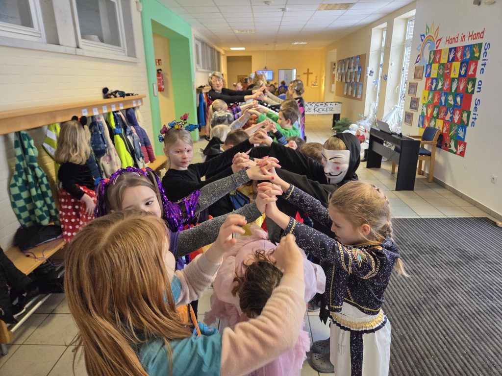 Ein ganz besonderes Dankeschön geht an unsere Eltern, die in jeder Klasse ein leckeres Buffet vorbereitet haben. 🍩🧁🍎 So konnten sich alle zwischendurch stärken und gemeinsam genießen. Es wurde gespielt, getanzt, gebastelt und sogar Modenschauen veranstaltet – ein echtes Highlight! 💃🕺✨ Krönender Abschluss war die große Polonaise durch das gesamte Schulgebäude. Mit Musik, guter Laune und ganz viel Helau zog sie durch alle Flure und steckte einfach jeden an. 🎶🎊